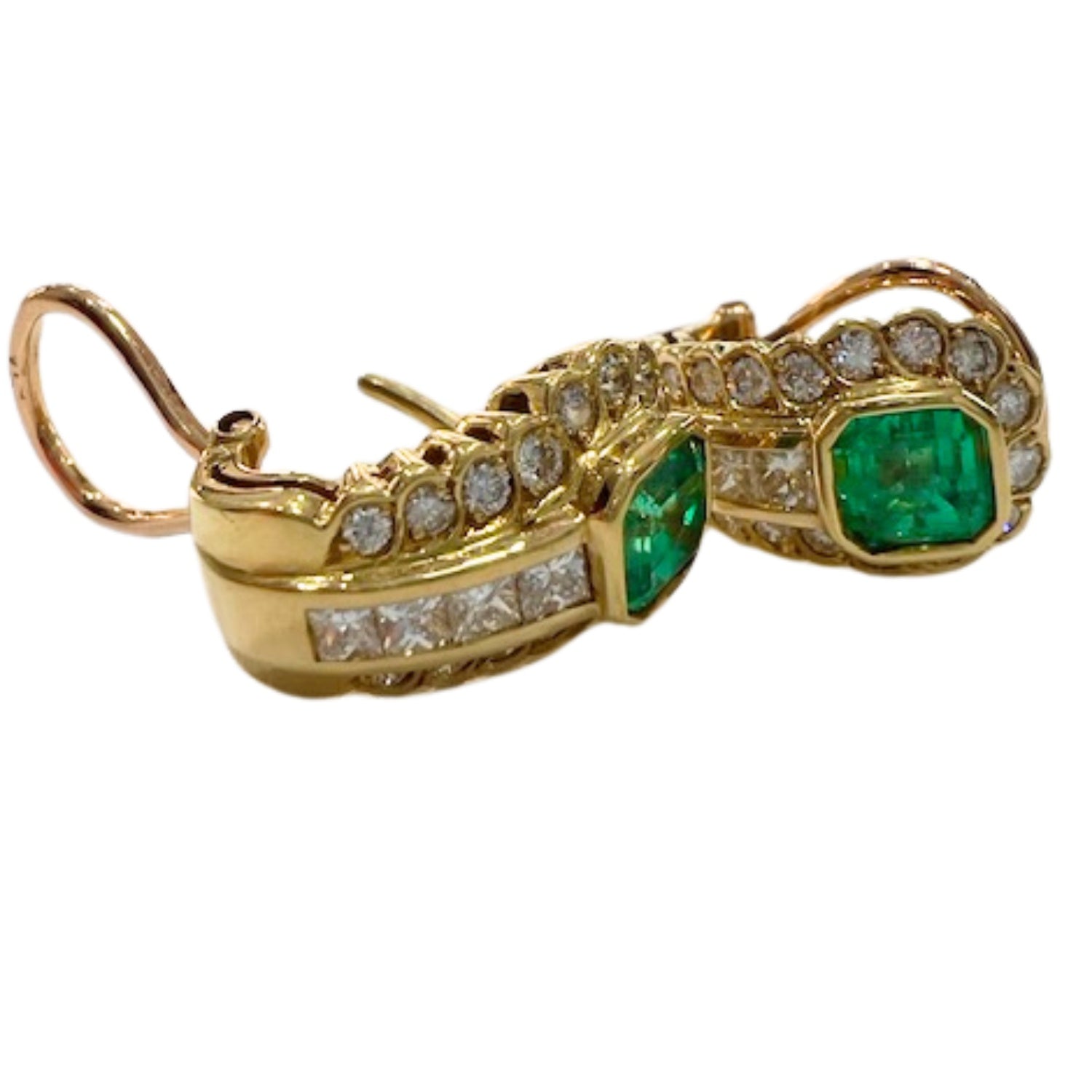 Pendientes de diseño contemporáneo de ORO 18 kts con DIAMANTES y ESMERALDA.