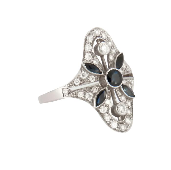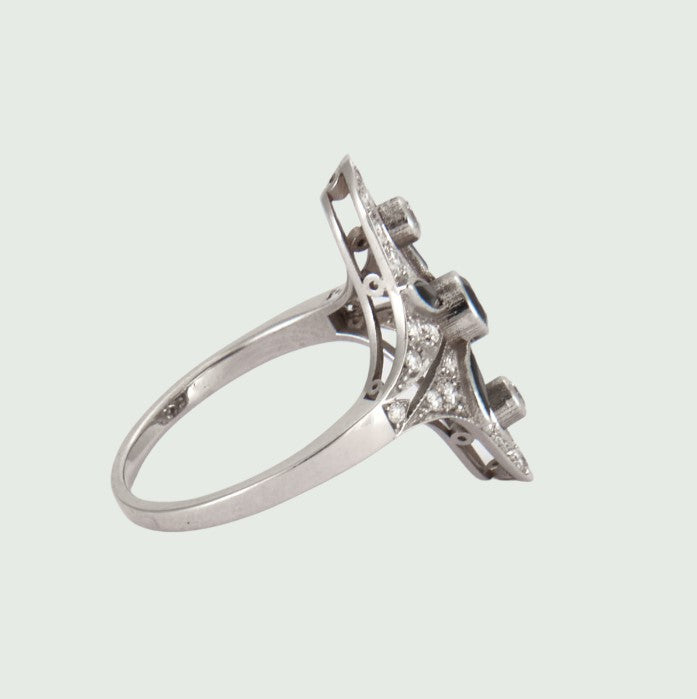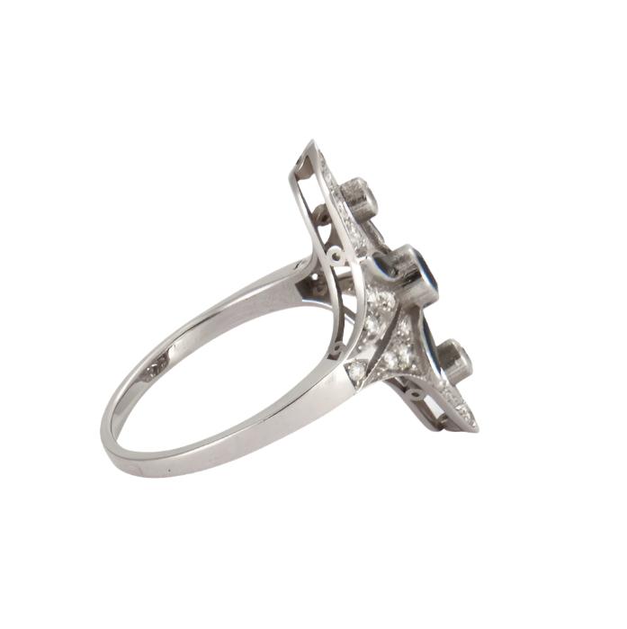 SORTIJA ESTILO ART DECO de ORO 18 kts con DIAMANTES y ZAFIROS