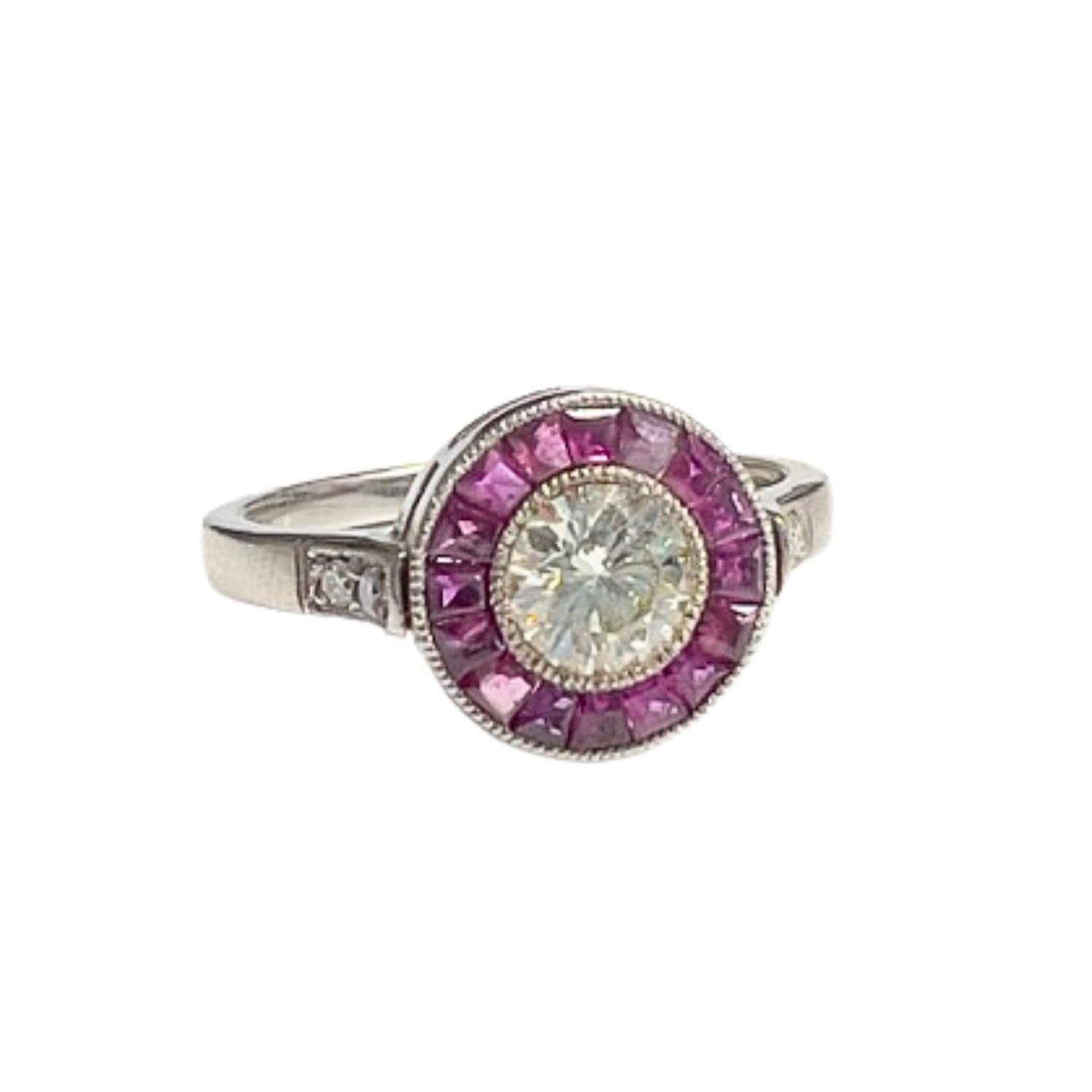 SORTIJA ESTILO ART DECO de ORO 18 kts con RUBI y DIAMANTES
