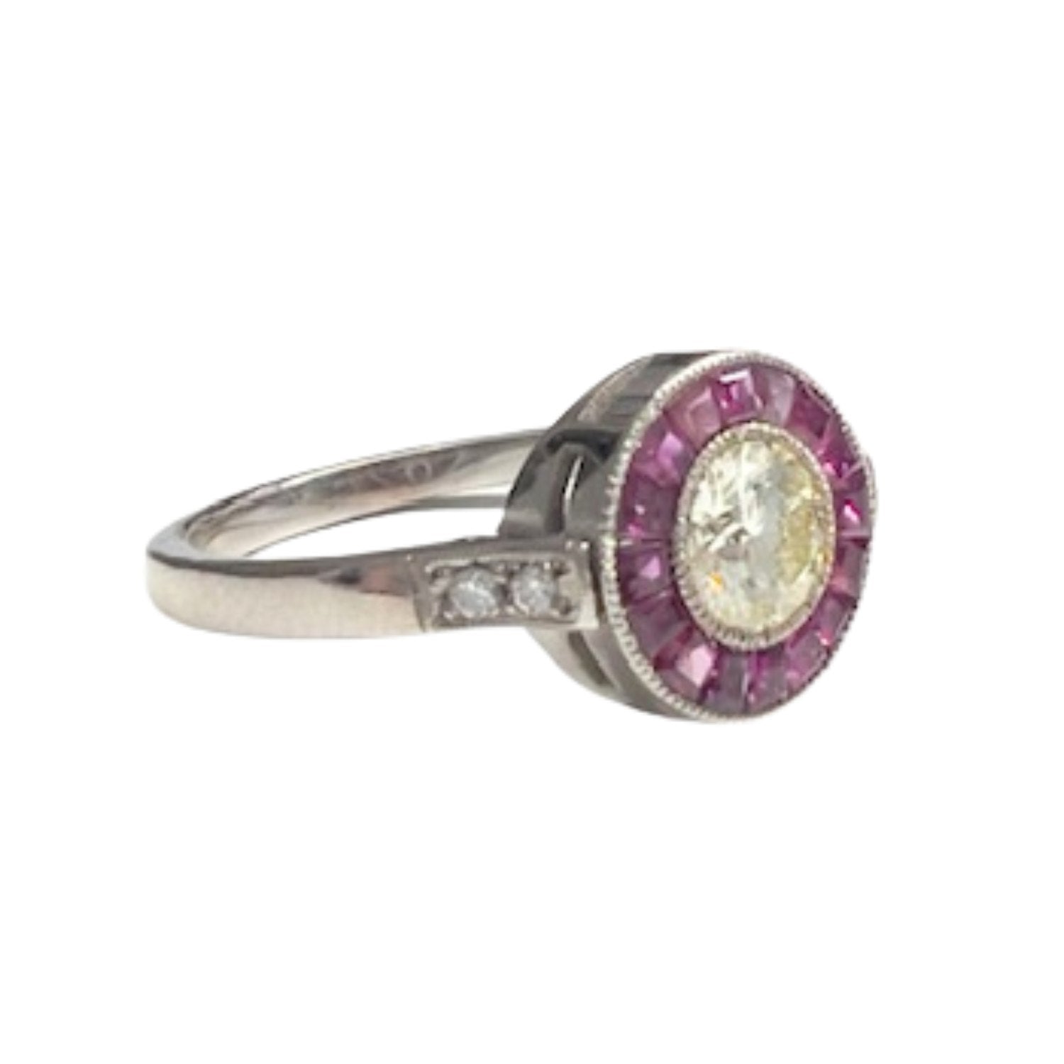 SORTIJA ESTILO ART DECO OJO DE PERDIZ de ORO 18 kys CON RUBI Y BRILLANTES