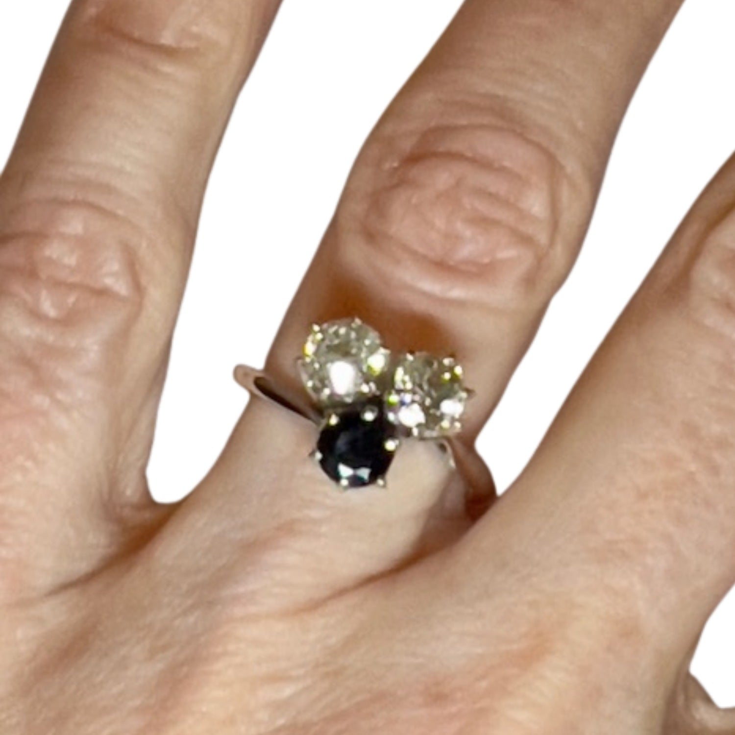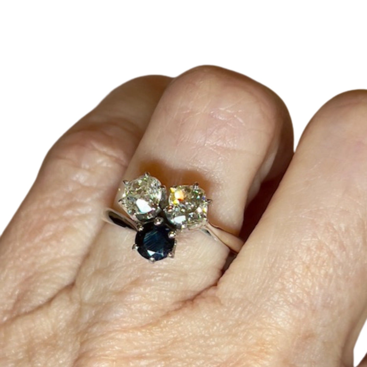 SORTIJA ESTILO ART DECO ÉPOCA 1935 de ORO 18 kts con DIAMANTES 1.22 ct y ZAFIRO 0.60 ct